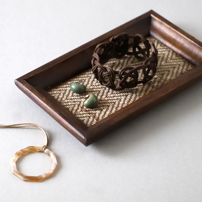 タイで見つけた、い草敷の木製トレイです。