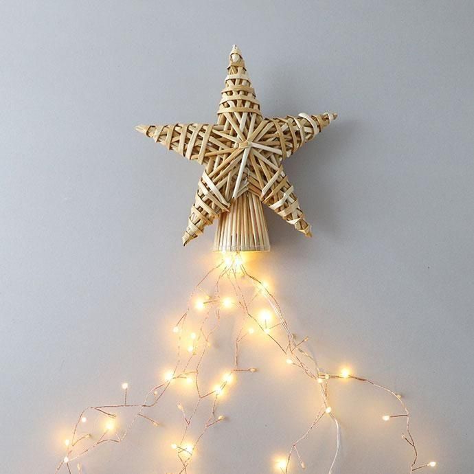 シンプルでありながら、自然素材ならではの温かみを感じさせるデザインで、ツリーのトップを彩ります。