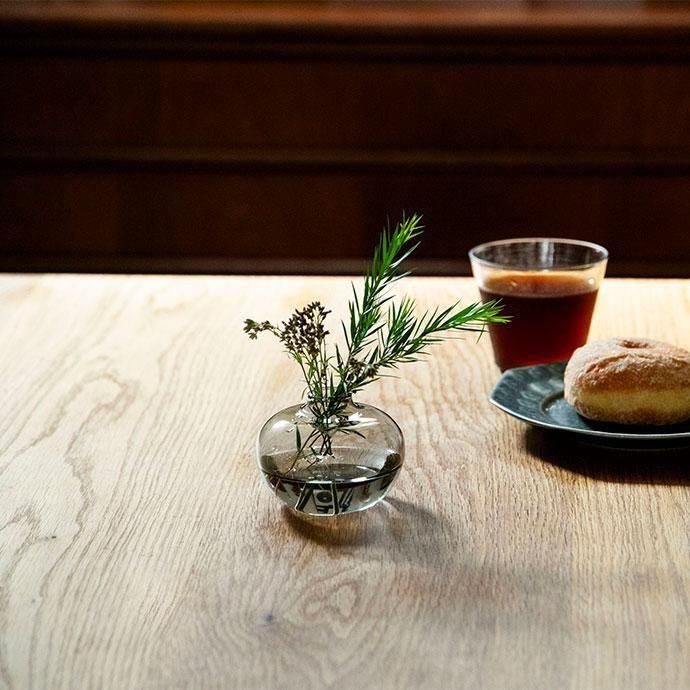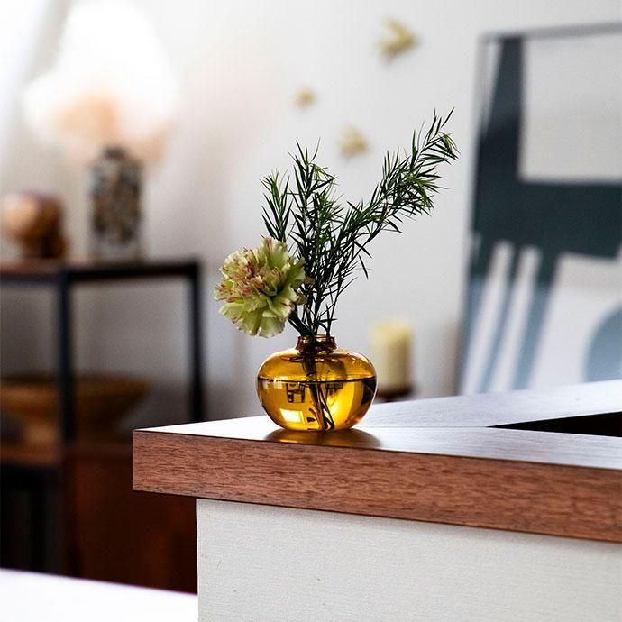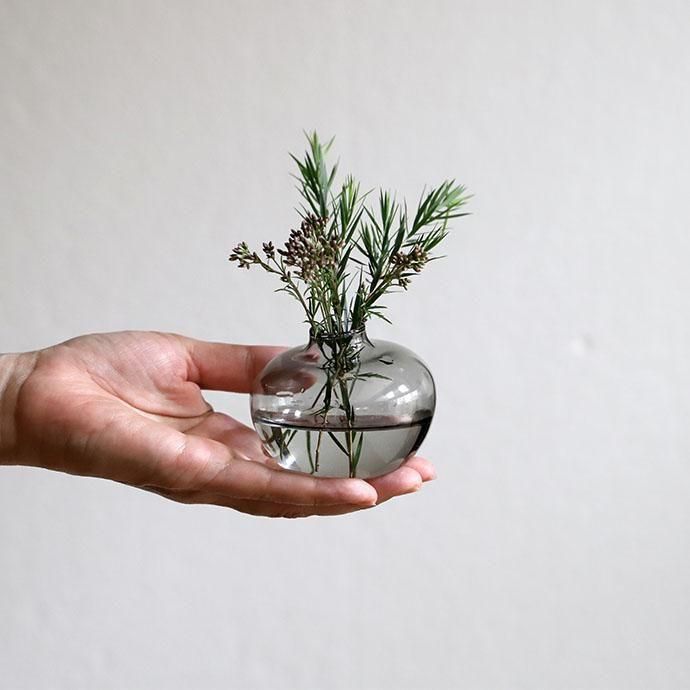 食卓やニッチな棚にも置けるサイズ感で、コロンとした丸いシルエットが草花を引き立てます。