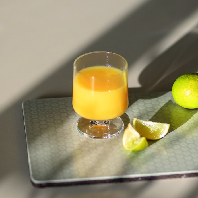 脚付きというところが、なんだか高級感を与えてくれるので、ただ単にお水を飲むだけでも、ちょっといい気分にさせてくれるグラスです。