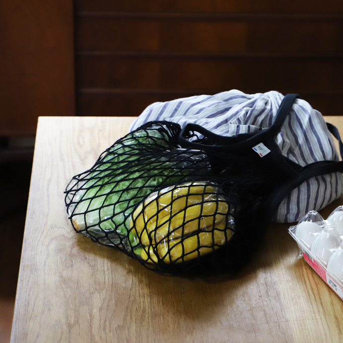 くるくると丸めればコンパクトになるネットバッグ。入れた物の形に合わせて伸縮するので、見た目以上にモノが入れられます。また、マチ幅を気にしないで入れられるのがいいところです。