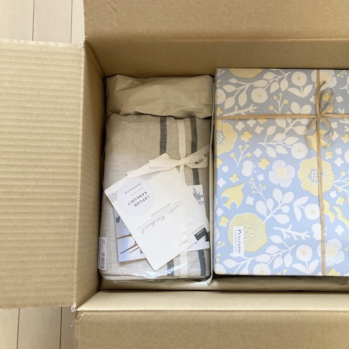 知人にプレゼントするコットンブランケット+ラッピング ×1点