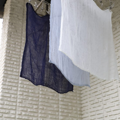 ①目の粗い蚊帳を大判薄手にすることで実現した、吸水性・速乾性