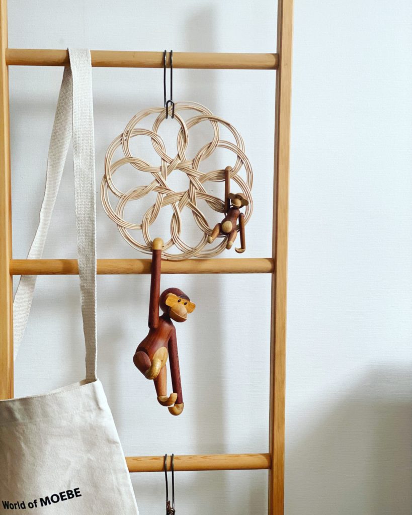 先日ふと思い付き、カイ・ボイスンのモンキーたちをモイリーのポットスタンドMに掛けてみたところ、思っていた以上に安定感があり、モンキーSはもちろん、モンキーミニの小さな手でもしっかりと引っ掛ける事ができました。