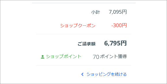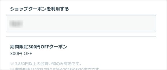 ③クーポンが適用されると、入力欄の下にクーポン内容が反映されます。合計金額を見て、クーポンが適用されたことをご確認ください。