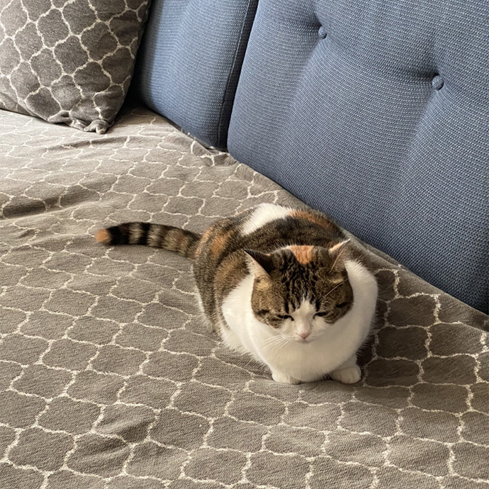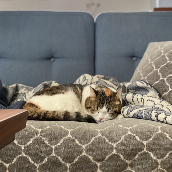 寒いのが苦手なので、おうちの中でちょっとでも暖かい場所を探しだすのが得意です。