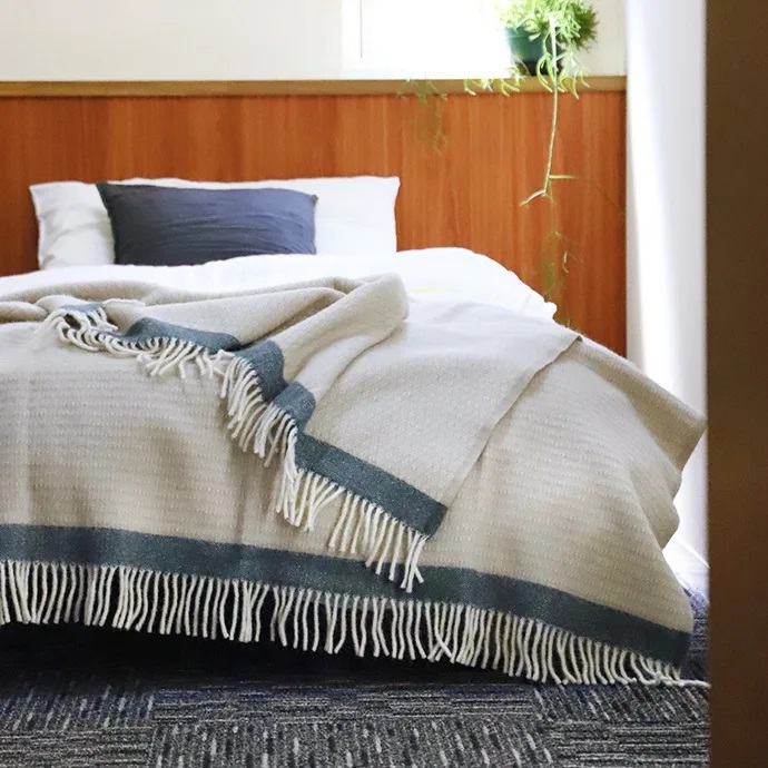 エコ ウールスロー ブランケット[ハラルド]シングル クリーム