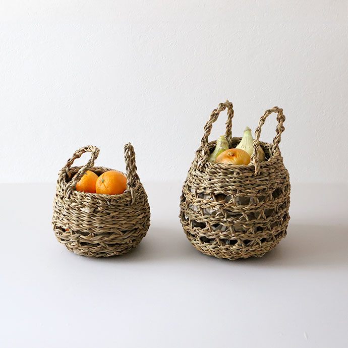 カゴやバスケットって、ちょっとした形の違いで用途が変わってくるので、いくつあってもいいなと思うのです。新しく入荷したシーグラスのバスケットは、見た目がかわいいだけじゃなく、結構使えるんですよ。