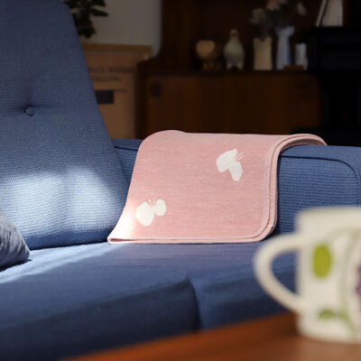 シュニール織のもこもことした肌触りが心地いい、KLIPPANシュニールコットンブランケット[choucho]ミニサイズに、新しくスモーキーピンクが登場しました。