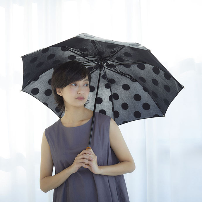 UV撥水加工を施しているので急な雨が降っても大丈夫!黒の日傘にさりげなくドットがあしらわれたジャガード生地で、シンプルな中にも個性が感じられます。