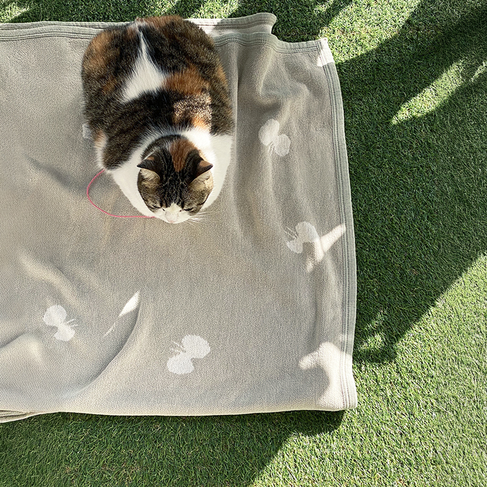 おかあさんも時々、きなこの真似をして、ブランケットの上でごろんとなって空を見上げていることがあります。雲の流れをぼーっと眺めていると、あたまの中が空っぽになってスッキリするようです。