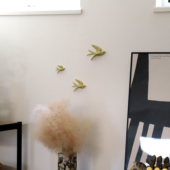 「幸せの象徴」と言われるツバメのオブジェが、いきいきと壁を自由に羽ばたいて、空間をパッと明るくしてくれる。その雰囲気が気に入り、今でも玄関やリビングに飾っているほどです。