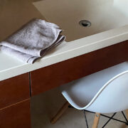 吸盤も付かない、フックも使えない洗面台で、あれこれ試行錯誤してきたけれど、結果的に「タオルは洗面台に置く」スタイルが定着している。