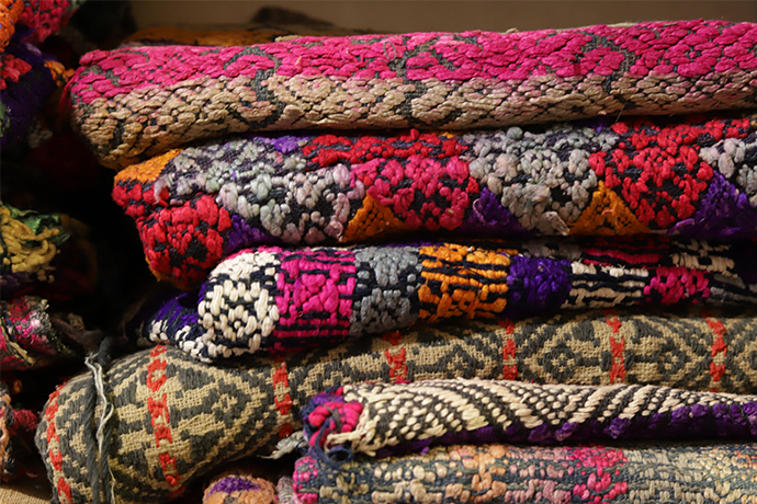 年代物の布がずらりと並んでいた。